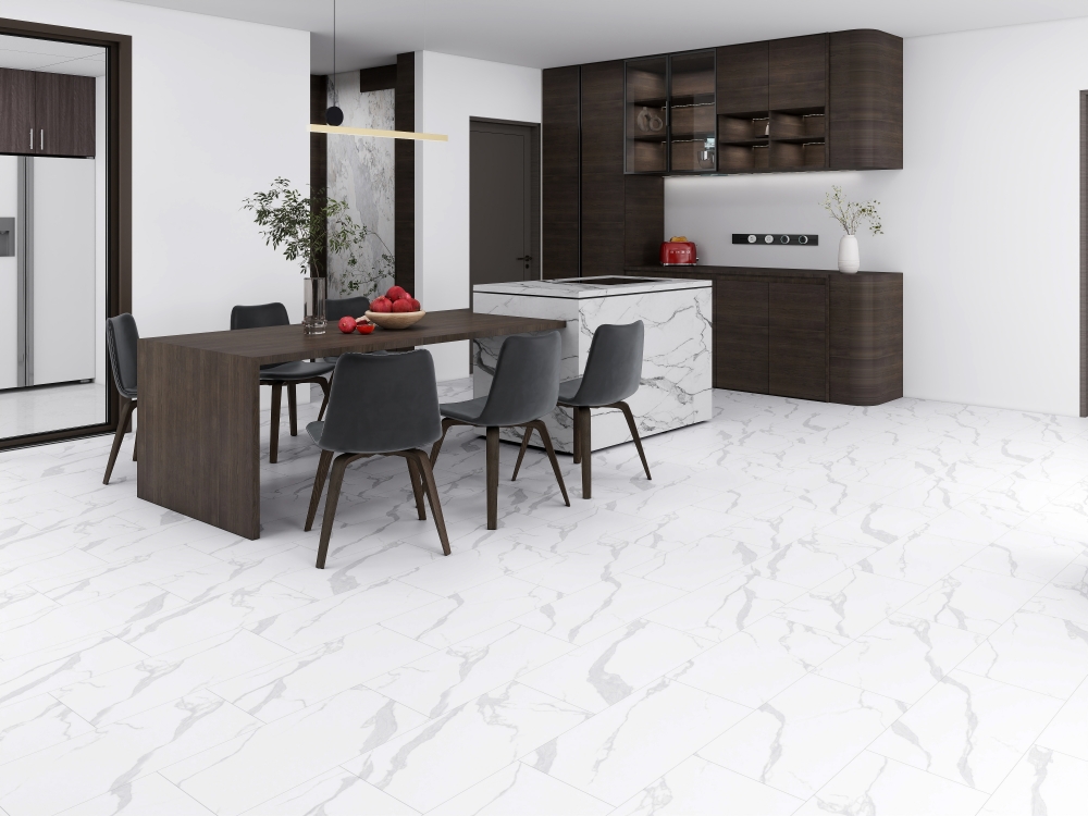 Like our Aqua Plus Collection, Aqua Tile is 100% Waterproof! It is a great option for a regularly wet floor. Aquatile flooring is designed to keep moisture and water above the floor long enough that it can be cleaned up before getting through to the sub floor. Aqua Tile is very easy to install, there is no need for nails, staples, or glue. The planks install flush to the walls, right up against them. No expansion gap is needed because Aqua Tile won't expand or contract. Each plank also installs flush with the surrounding plank securely. The bottom surface creates a good amount of friction, almost gripping the sub floor underneath it.